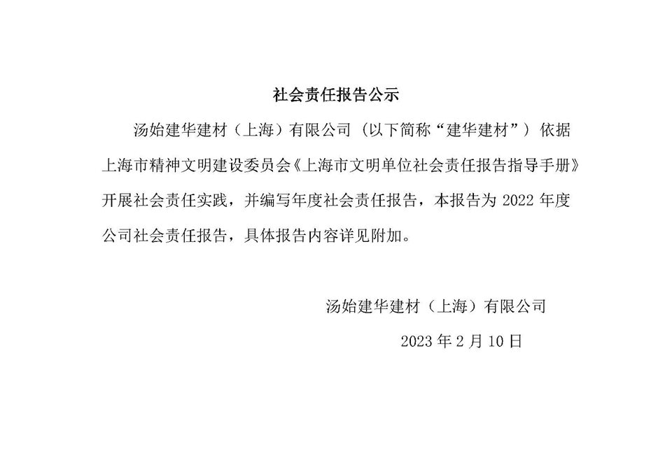 湯始建華建材(上海)有限公司社會(huì)責(zé)任報(bào)告(2023年度)見(jiàn)附件